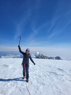Inizieremo l’ascesa all'una di notte. Il percorso presenta un ampio ghiacciaio, inizialmente senza molta pendenza. Successivamente si presenterà un pendio di 50° e un muro di 70–80 metri. Dopo aver superato questo muro, resta solo una piccola sezione tra una cresta e un pendio moderato, che infine ci condurrà alla cima.